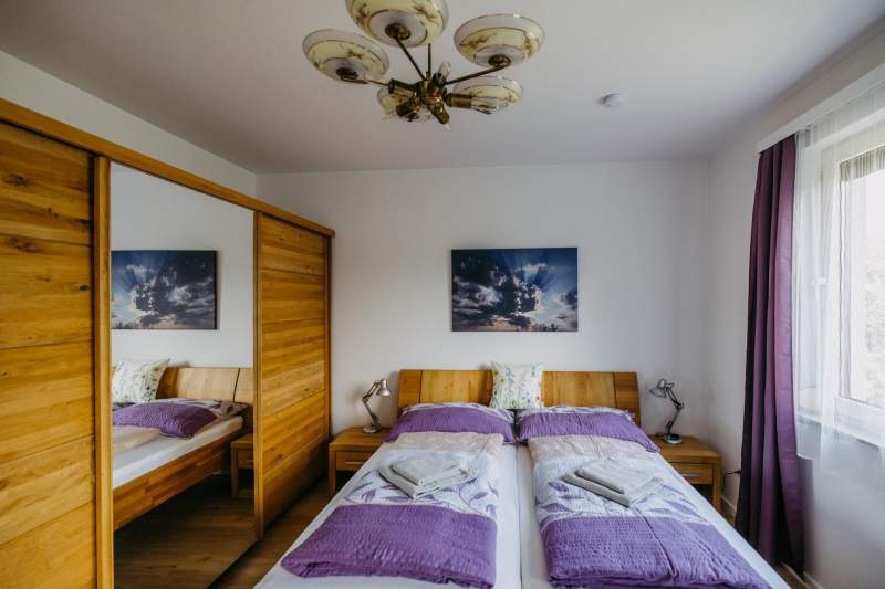 Ca. 100 m², 3 Schlafzimmer, 2 Bäder mit Dusche, offene Wohnküche, Wintergarten sowie ca. 300 m² eingezäunter Naturgarten mit Spielgeräten - das Apartment ist ideal für Familien, erweiterte Familien und befreundete Familien.