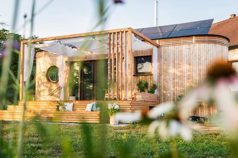 Bei mir wird Nachhaltigkeit ganz groß geschrieben, denn mein Strom kommt von der Sonne und durch meine Bio-Trenntoilette wird ganz viel Wasser eingespart. Wenn es kühler wird, sorgt mein Holz-Pellets-Ofen für eine besondere Atmosphäre. Meine riesige Terrasse lädt zum Entspannen ein und auch im Garten gibt's Einiges zu entdecken.