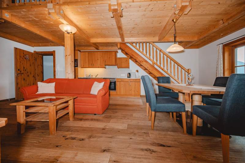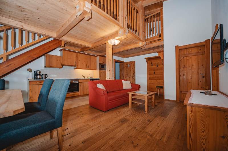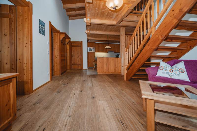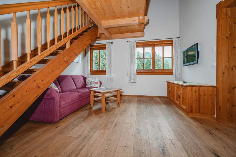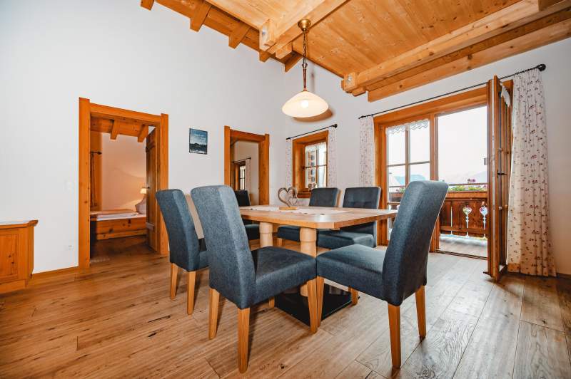 Unser Haus liegt auf 1.000 Meter Seehöhe und bietet einen wunderbaren Blick auf die umliegenden Berglandschaft des Salzburger Saalachtals. "Direkt vom Frühstück auf die Piste" - diese Lage ermöglicht es unseren Gästen die Ersten auf der Piste zu sein, denn diese startet direkt vor der Haustüre. Auch unsere Sommergäste dürfen sich einer besonders guten Ausgangsposition für Wanderungen sowohl für gemütliche Familienwanderungen als auch für Bikeausflüge erfreuen. Nach einem abenteuerlichen Ausflug empfangen wir Sie gerne im unserem Restaurant und verwöhnen Sie mit hausgemachten Köstlichkeiten. Unsere traditionell österreichische Küche reicht von deftiger Hausmannskost nach Omas Rezepten, bis hin zu leichten Salaten mit hochwertigen Ölen und schafft so eine Verbindung von traditionellen Schmankerln zu modernen leichten Gerichten. Nach einem reichhaltigen Essen machen Sie es sich in unseren Appartments gemütlich und genießen den erholsamen Duft der Zirbe in den Schlafzimmern.„Der Tradition treu bleiben und sie neu erwecken“, so lautet der Leitspruch unseres Betriebes. Wir sind ein Familienbetrieb, der es sich zur Aufgabe gemacht hat, seinen Gästen einen erholsamen und unvergesslichen Urlaub zu bieten. Die Geschichte unseres Hauses startete im Jahre 1969 und diente zunächst als Zufluchtsort für hungrige un durstige Wanderer. Im Jahre 1972 wurde das jetzige Haus etwa 50 m oberhalb des "alten Loderbichls" erbaut und von den Großeltern geführt. 2011 beschlossen wir den Loderbichl neu erstrahlen zu lassen und das Haus wurde neu aufgebaut. Mit dem traditionellen Salzburger Baustil und dem hochwertigen Material des Altholzes, vermittelt es eine gemütliche einladende Atmosphäre und lädt zum gemütlichen Verweilen ein. Leistungen inklusive: Bettwäsche, Handtücher, Strom, Wasser- und Kanalgebühr, Infrarotkabine und Waschmaschine in jeder Wohnung, W-Lan, Garage für Auto und Fahrräder, beheizter Skikeller, im Winter Gepäcktransport