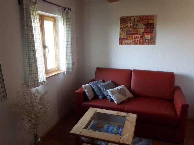 Ausstattung: Schlafzimmer, vollausgestattete Essküche mit Nespresso-Kaffeemaschine, Wohnzimmer mit SAT-TV, Badezimmer mit Dusche und WC, Terrasse mit Gartenmöbel und Sonnenschirm.