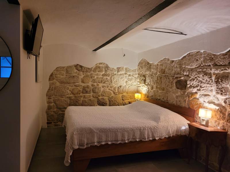 Im ersten Stock ist ein weiteres Schafraum mit großem Doppelbett für 2 Personen und einem Schafsofa für eine Person.