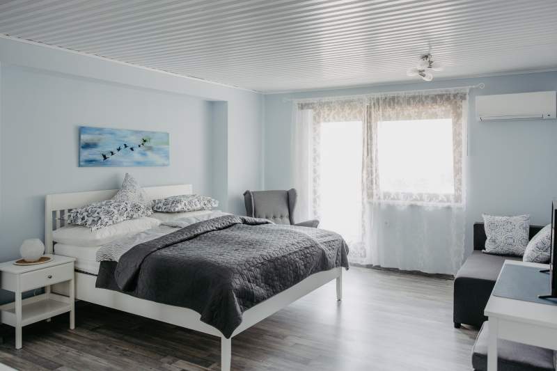 Die Räumlichkeiten sind modern und hell eingerichtet. Die beiden Schlafräume sind mit einer Klimaanlage ausgestattet.