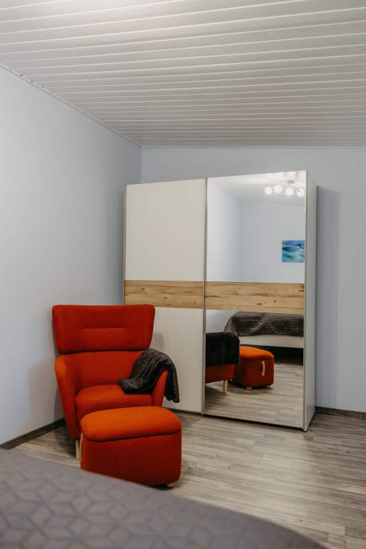 AVA 3 verfügt über eine komplett ausgestattete Küche mit Backofen, Herd, Kühlschrank, Mikrowelle, Geschirrspüler, volles Sortiment an Utensilien, Geschirr und Besteck. Ein Esstisch für 4 Personen befindet sich in der Küche. Außerdem gibt es eine Kücheninsel mit 2 Barhockern zum Verweilen. Ein Relaxsessel fordert zum Ausruhen auf.
