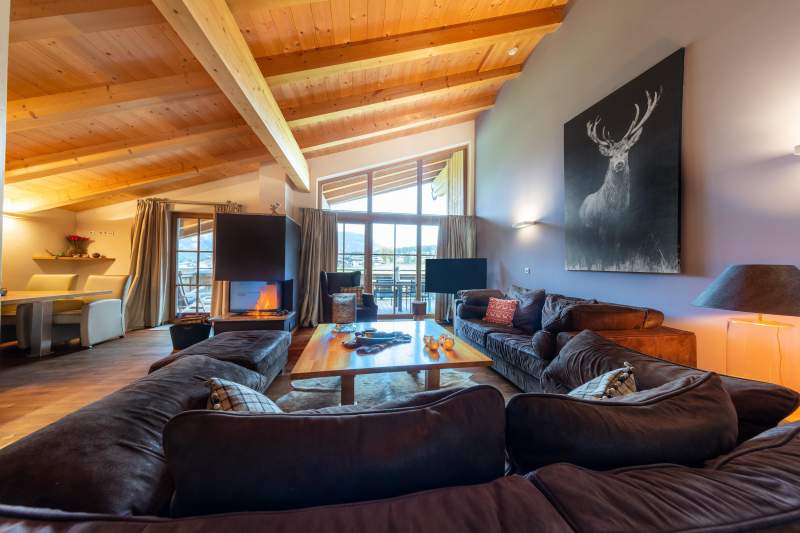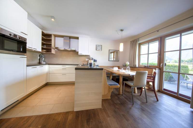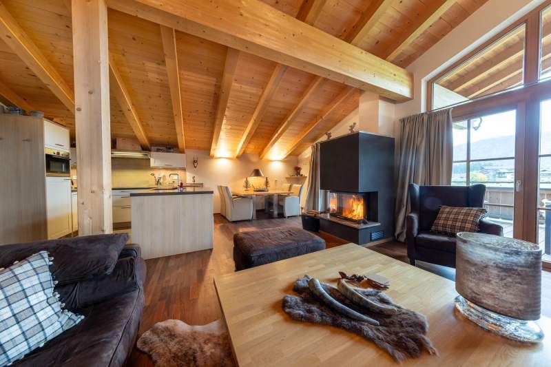 Die luxuriöse Ferienwohnung A2 für 2 - 6 Personen verfügt über 3 Schlafzimmer mit Doppelbetten sowie 2 Badezimmer. Genießen Sie den Blick auf den Wildkogel auf der über 60m² großen Dachterrasse. Die Wohnung verfügt über eine vollausgestattete moderne Wohnküche sowie einen Kabel-TV mit Streaming-Dienste und gratis W-Lan.