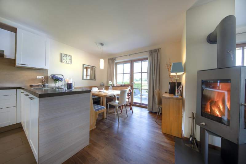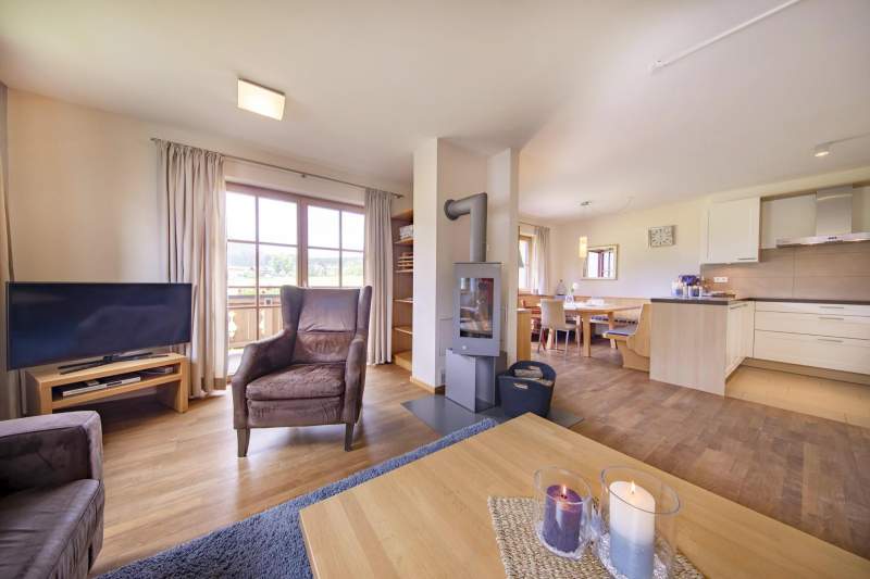 Die luxuriöse Ferienwohnung A1 für 2 - 6 Personen verfügt über 3 Schlafzimmer mit Doppelbetten sowie 2 Badezimmer. Der Kaminofen im Wohnzimmer sowie die große ebenerdige Terrasse mit herrlichem Berg-Panorama laden zum Genießen ein. Die Wohnung verfügt über eine vollausgestattete moderne Wohnküche sowie einen Kabel-TV und Streaming-Dienste und gratis W-Lan.
