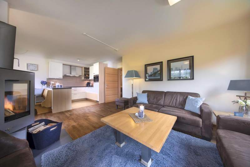 Vier Appartements verfügen über 3 Schlafzimmer mit Doppelbetten, Balkon oder Terrasse, 2 Badezimmer, extra WC, eine voll ausgestattete offene Küche mit gemütlicher Sitzecke, Wohnzimmer mit eleganter Rauhleder-Couchgarnitur, offenem Kamin, Flat-Screen mit Kabel-TV und Streaming-Dienste, Safe und kostenlosen Internetzugang.
